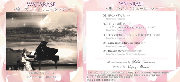 ご自宅でも、高次元の音色・古澤幸恵さんの優しいピアノの音色に触れていただき、少しでも、癒しの時間をお持ちいただければと思います。